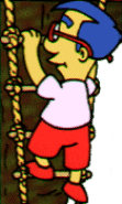 Millhouse climbing a ladder. |