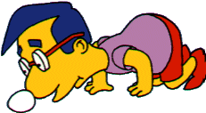 Millhouse rolling an egg on his nose. |