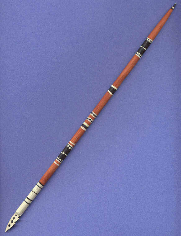 The school in Pilot Point is small. There are sixteen students from K-9. There are only three teachers: Bob McDonald, Natalie McBrayer, and Maritza Jennings. There are only five kids in our class and three that are in the same grade as I. There used to be three more kids in our class, but they moved away. We have a pretty good sized gym, in which we play games like volleyball, basketball, and other games when we feel like it. At 7:00 P.M. there is night gym. That's where we get an hour to play games like basketball and other stuff like that. Lunch time for our class is pretty small: only four kids eat. There are only three classrooms and a computer room. We have a Suburban for our bus. It holds ten kids. In Anchorage there are many more kids in classes and more teachers too. They have bigger gyms and probably play better games than we. When it's lunch time for them, there are many kids. They also have bigger buses that could hold more than ten kids. They have more classrooms and more computers too. The picture of the Aleut spear above is one I made in a art class with Patrick Lind. ã 2001 by Byron Kalmakoff last updated 3/27/01 |