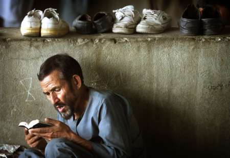 STARVING AFGHAN IN REFUGEE CAMP READING THE QURAN