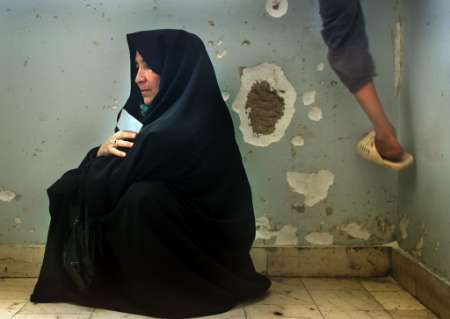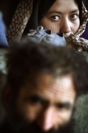 STARVING AFGHANI WOMEN AND MAN. THE MAN IS CLIMBING ON THE WALL WITH SLIPPERS JUST TO HAVE SOMETHING TO DO!!
