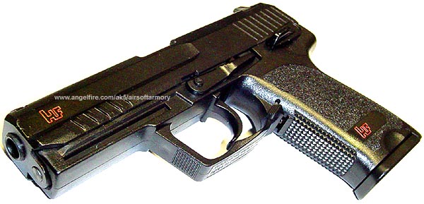 Excellent detail. Full trademarks, detailed engraving on the slide, lower receiver, and magazine. Light weight. Magazine compatible with UHC USP spare magazines. Excellent details.