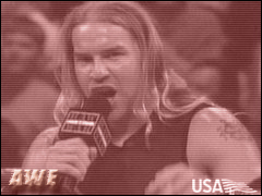 [[After the match, and each competitor has been helped to the back suddenly the arena is lit up.....]] 'THIS IS EXTREME!' [[The crowd roars as out from the back with his sexy Deputy at his side, Dawn Marie walks the owner of the AWE.... Paul Heyman. He has a belt on his shoulder though. Many stand in disbelieve as to what the belt is, as he walks down to the ramp, and into the ring, where Dawn Marie hands him a microphone and Heyman begins to speak.......]] Paul Heyman: Thank you..... thank you... [['E-C-W' E-C-W' is heard as Heyman continues.......]] Paul Heyman: Thank you..... I chose to come out and address the people myself here tonight, because I have a matter of business to attend to, which includes 8 superstars that think they got the intestinal fortitude, I'm addressing 8 guys back there that think they got the BALLS to step up to the plate and fight for the right to be a champion! [[What's Heyman talking about? 8 men? Who are they?.......]] Paul Heyman: Now, the belt you see over my shoulder is the brand spanking new, Action! Wrestling Entertainment INTERCONTINENTAL CHAMPIONSHIP!!!! This belt will be distributed to the guy who can win 3 straight matches against some of AWE's finest! [[ A new title? Wow.... Heyman is on a roll. But when is this starting?]] Paul Heyman: Now, the 8 men I'm discussing will be placed in first round matches starting next week at Crash & Burn. These men will be THE BIG SHOW, VAL VENIS, CHRISTIAN, RAVEN, SHANE DOUGLAS, THE UNDERTAKER, the loser of the Taz versus Triple H match, and finally...... SHAWN MICHAELS! [[ The crowd goes crazy as Heyman smiles, suddenly.....]] 'CHRIS-TIAN..... CHRIS-TIAN' [[ What the hell is this? Christian walks out from the back smiling, and pointing to all his 'peeps' as he walks down the ramp and into the ring, where he blows Dawn a kiss, and pulls his own microphone out of his back pocket. Everyone has to have a microphone these days........]]