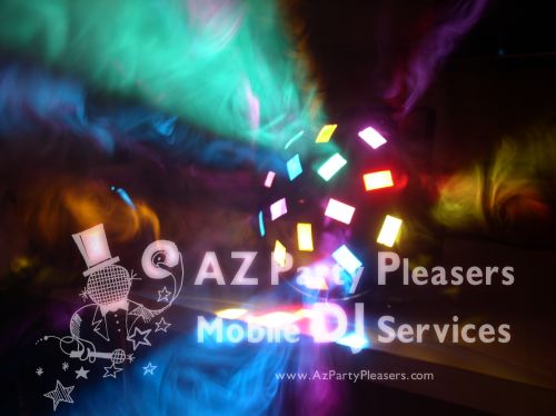 Professional Club Atmosphere Light Effects Video Clip of AZ Party Pleasers' Full Light show complete with fog. Download 3mB Quicktime File