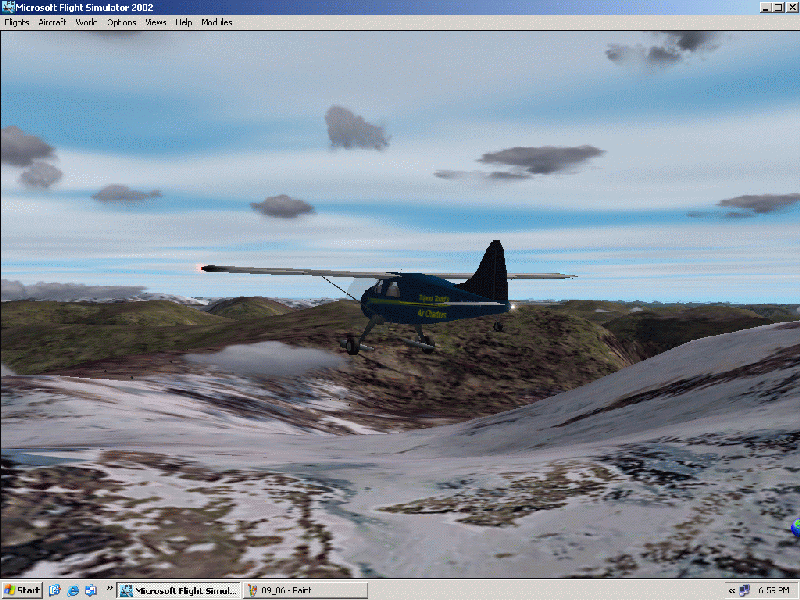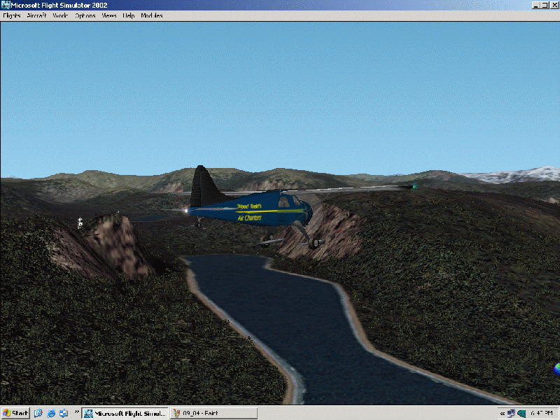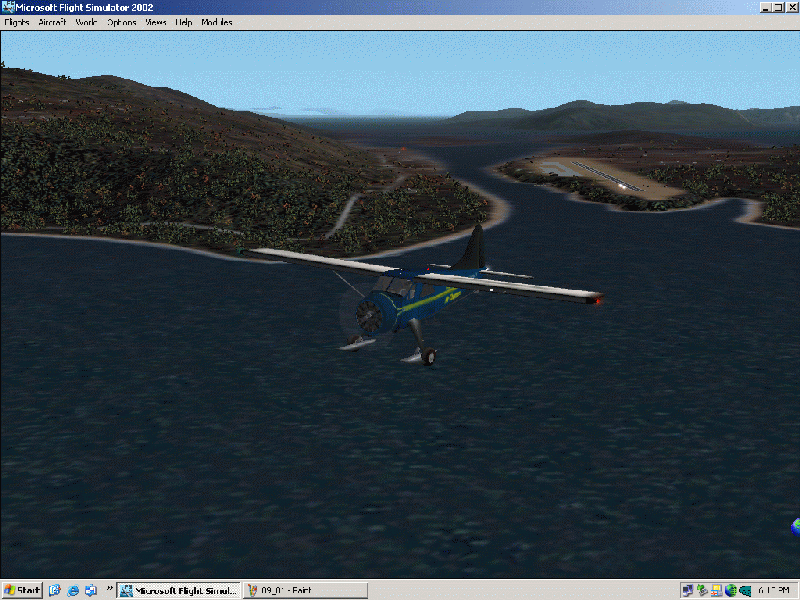This was a shorter flight than I originally thought it would be. It went very smoothly, until it came time to land. I used real weather, and at PAKT, the skies were clear with light wind. I met the fishermen, Eric, John, and Tim, at PAKT, and we all hopped into my TTAC Beaver. I set the pitch for T/O, turned on the lights, tuned the ADF to the TT NDB, which came with Bridgeman. At 13:33, we took off runway 29 at PAKT.