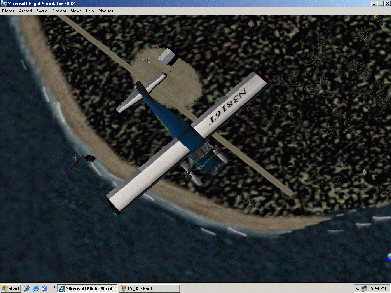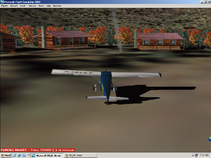 I squeezed through the little space I had between the trees surrounding the runway and the beach, and took them right up to the cabins. During this time I realized that I didn't even see a taxiway off the runway, so it turned out for the better that I didn't land on it.