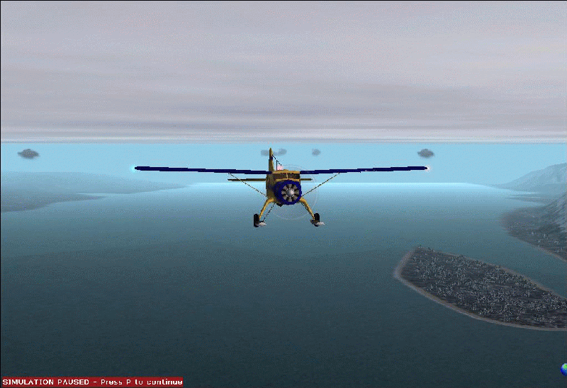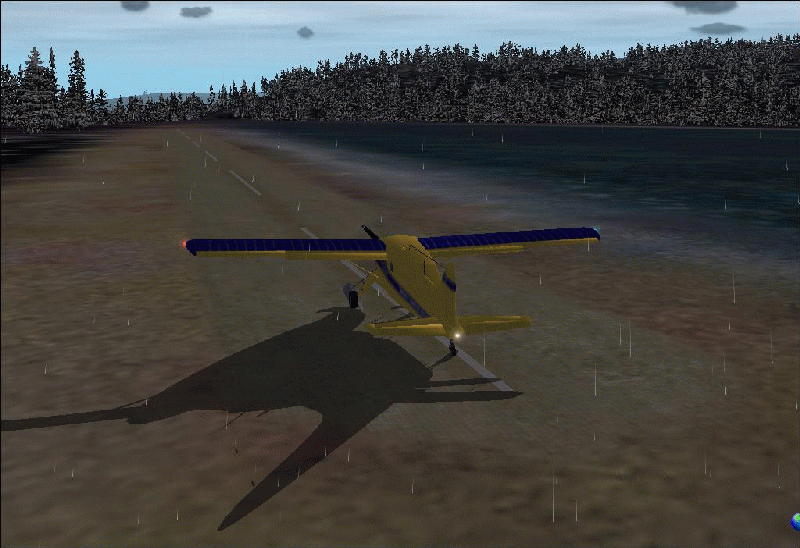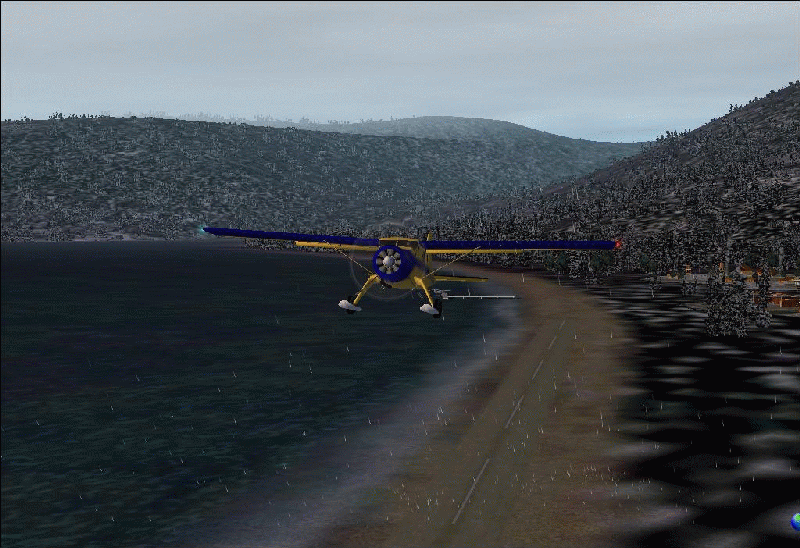 It felt good to get back into the cockpit. I decided to take out the new Beaver for this flight, in the new TCS livery. I came from Petersburg, stopped in BFUn for gas, and then headed to Shore Point. Being my first visit there, it was challenging to land there. I ended up rounding the cove and approached at an almsot suicidal 1500 FPM. I pulled the nose back up at the last second, but one-hopped the landing. No one saw it though, so I pulled off the runway and taxied to the grocery store.