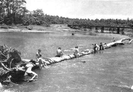 Swimming in a muddy river in the Solomons might seem like a nice way to cool off a bit, but having a soldier with a rifle looking out for alligators who might want to join you puts a damper on the fun. Especially when someone jumps six foot out of the water just because he was brushed by a tree limb floating by. When I returned to the States, the movie "Guadalcanal Diary" was playing at a local theater, so I went to see it. The way the movie was portrayed, Guadalcanal didn't seem all that bad. But then I had to remember -- the movies were trying to entertain you, the Japanese were not.