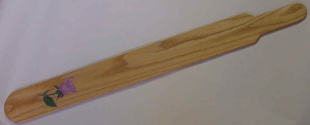 2 1/4" Wide 24" Long and 1/4" Thick, Made from Red Oak. The Rose has a stingy felling like the Paint Stick but covers a larger area.