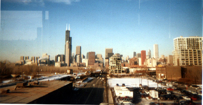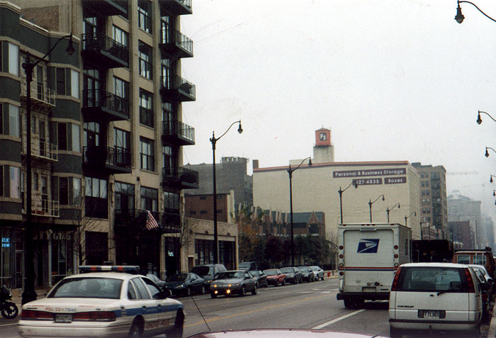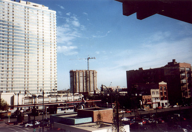 This is a view from the Roosevelt El Station. Roosevelt ave is a wide Street that starts at the Field Museum and crosses a viaduct over trainyards to head to the west side. From the time I took this photo, residential construction has started on three plots of land(including the gas station).