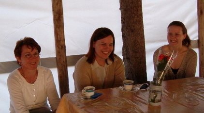 tehtiin täkki naisten voimin, oli täkkipuut ja siinä väliin sitten pantiin jotain pumpulia, ja kankaat molemmin puolin ja naiset ympärillä neuloivat täkin niin, että pumpulit pysyivät paikoillaan täkin sisällä.