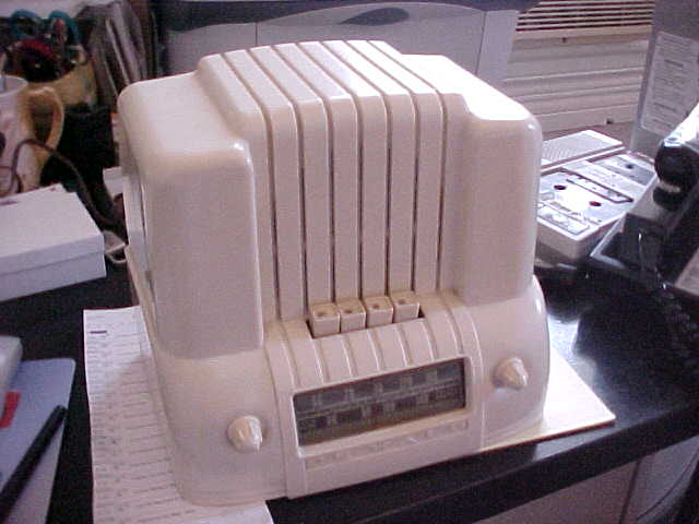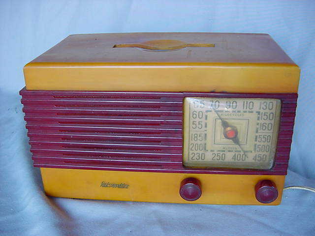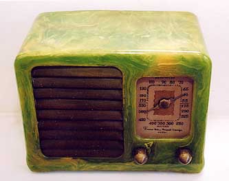 Here is another Emerson Catalin radio from 1937. This is the small table model set which receives the standard broadcast band. There is heavy swirling of the plastic on this radio. Very colorfull.