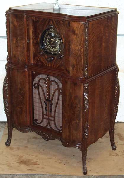 In 1938 Zenith offered a model in the style of the Frenh Louis XV styling of furniture. This is a classis style of furniture which many times over the decades was in vogue. This model was sold for this one year only. Quite a contrast to the modern industrial designs that were sweeping the nation at the time.