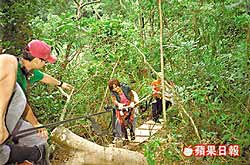 (5/17/2001) (a) the crew helps Candy Lo Hau Yam (b) Chin Kar Lok (right) carefully describes the sceen to Candy Lo Hau Yam and Takashi Okamura (Gong Chuen Lung Si) | |