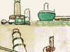 na procura de petróleo, é preciso antes estudar as camadas do solo e a constituição