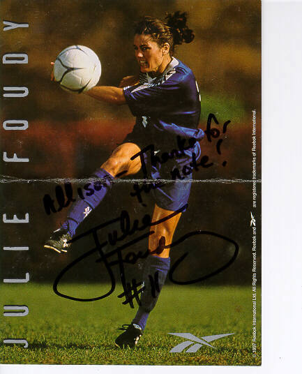 Here's the note that I got from Julie Foudy. It's her Reebok card