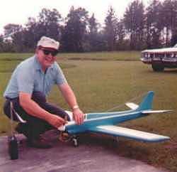 (R)1972 - Don't tell anybody.....But here's Henry Col. Waltman with a "ARF" (rubber duck) airplane.