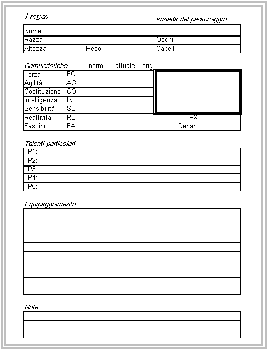 per il PG. Assegnate un tot di denari, un equipaggiamento di base adatto