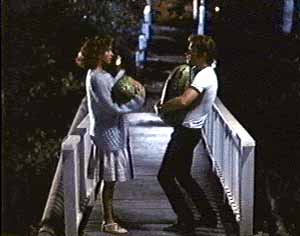 The Time Of Your Life Johnny: "You just put your pickle on everybody's plate college boy, and leave the hard stuff to me." Johnny: I've never know anybody like you, Baby. You look at the world and you think you can make it better. If somebody's lost, you find them. If somebody's bleedin... Baby: Yeah, I go get my daddy. That's real brave. Like you Said. Johnny: That took a lotta guts to go to him you are not scared of anything... Baby: Me? I'm scared of everything. I'm scared of what I saw. I'm scared of waht I did, of who I am. And most of all... I'm scared of walking out of this room and never feeling the rest of my whole life, the way I feel when I'm with you.. Johnny: "Nobody puts Baby in a corner." Johnny: "Yo cuz, What's she doing here?" Billy: "She's with me. She came with me." Baby: "I carried a watermelon." Baby to herself: "I carried a watermelon." This page set was sent to my by my Secret Sister Back to the Movie Page Back to the 80's Flashback Page