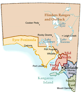 As you will see from the map above most of the northern half of the state is covered by the Great Victoria and Simpson deserts and the center is occupied by the saline lakes of Eyre, Torrens, Frome and Gardiner.