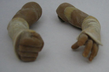 I was really unhappy with the way the wrist guards were looking, so I hollowed them out around the top of the hand. I think it looks much better this way.