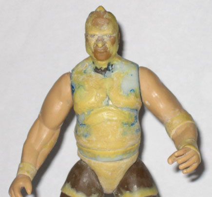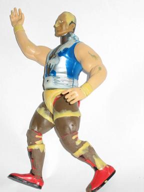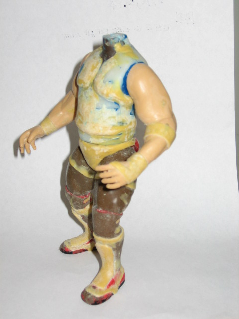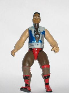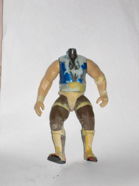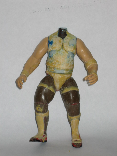 Haven't done this in a while, so let's see if I still remember how. This is just the basic parts choice. Ahmad Johnson legs, Flash Funk torso, L.O.D. arms and a Rock head.