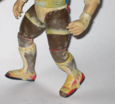 Sculpted on the hem of the shorts and started the wrist tape on the left hand. Still building up the crotch and a few mods to the head. I also dilled out a hole on the right knee pad.