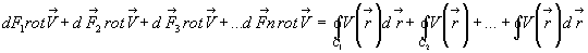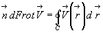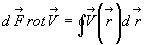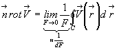F es una superficie esférica a través de la cual fluye el campo V(r), r es un vector posición del diferencial dF respecto al punto 0, C es el contorno de la superficie F.