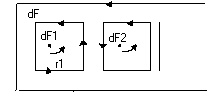 Se subdivide la superficie dF en varias partes, las flechas indican la rotación del campo que las atraviesa.