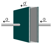 G entra a la placa positiva y abandona a la negativa. La corriente eléctrica no es continua a través del dieléctrico que separa a las placas debido a que no hay transporte de carga a través de éste, sin embargo, la densidad de corriente de desplazamiento G' en el dieléctrico es exactamente igual a G, manteniéndose entonces el concepto de continuidad de la corriente.