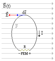 esta ecuación es la forma diferencial de la Ley de Faraday, y expresa que campos magnéticos variantes en el tiempo generan campos eléctricos rotacionales, así como puede apreciarse en la figura.