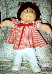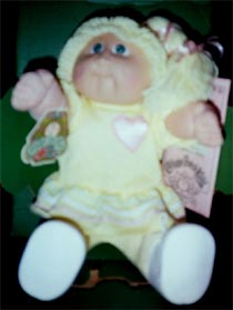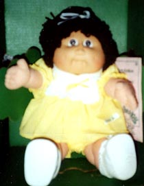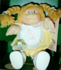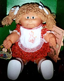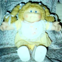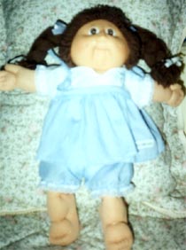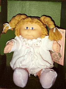 Kristin is a 1985 Coleco Kid from the IC factory. She has a #1HM, green eyes and tan poodle hair with a single braid!