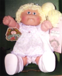 Jill is a 1984 #5HM Coleco Pitts Bouts de Choux kid which was made for Canada. Her box and papers are in both French and English. She has orange double ponytails, green eyes, and her first tooth!