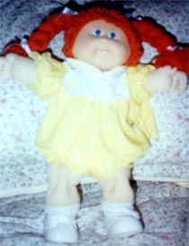 Samantha is a 1985 #5HM kid with red braids, blue eyes and her first tooth! She was born at the OK factory.