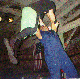 Harley Wood(The Champ) is without a doubt the most destructive man in wrestling today. His shoulders have never been pinned in ACW. He is known for being (WARNING : wrestling cliche') the 'enforcer' of MilleniuM. The H- Bomb has the most experience of the group having won Rookie of the Year in two other organizations and he has also won numerous titles in other places too. On Oct. 28, 1999 Harley added the ACW Championship to his accomplishments. Check out the H- Bomb about to break Matt White' s spine: