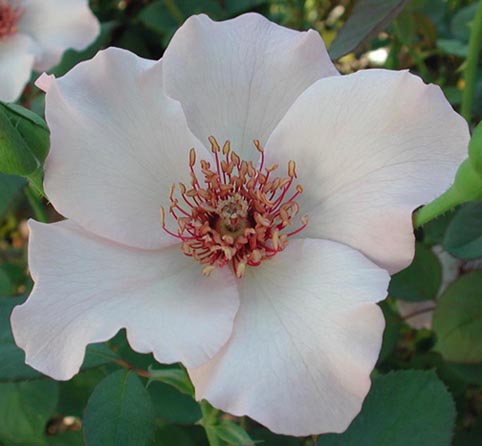 Dainty Bess continues to be the favorite single type hybrid tea in the garden. Everyone enjoys the many light pink blooms with dark stamens that are produced throughtout the year.