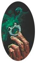 When the mists cleared, I heard a call from the shore and lit upon a gnarled old tree was perched a griffin, it's emerald pelt sparkling in the moonlight. As I watched the creature, it shifted it's eyes in my direction until it lifted from it's branch and soared the distance to perch atop the center mast of the Darkhorse. It was then that my eyes caught sight of something else in the fog, the figure of a man standing beneath the branch which had held the griffin.