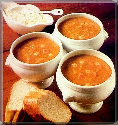 Slice the leeks, onion and celery in the processor. Heat the oil and fry the sliced vegetables until soft. Stir in the flour. Gradually add the chicken stock and stir until thickened.Coarsely grate the carrots. Chop the tomatoes. Add both the carrots and tomatoes to the soup with ham and pasta shapes, and season to taste. Bring to the boil, stirring occasionally, and simmer for 20 minutes until the vegetables are cooked. Serve with French bread and Parmesan cheese.