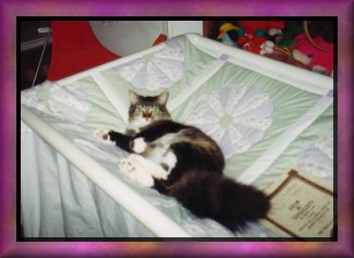 Tigger laying on my quilt that I made for myself.