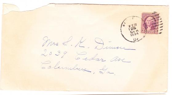 This first letter was written by Elbert Peacock to Sarah Watkins Peacock her sister talking about the birth of my mother Elberta letter dates Feb. 26 1934