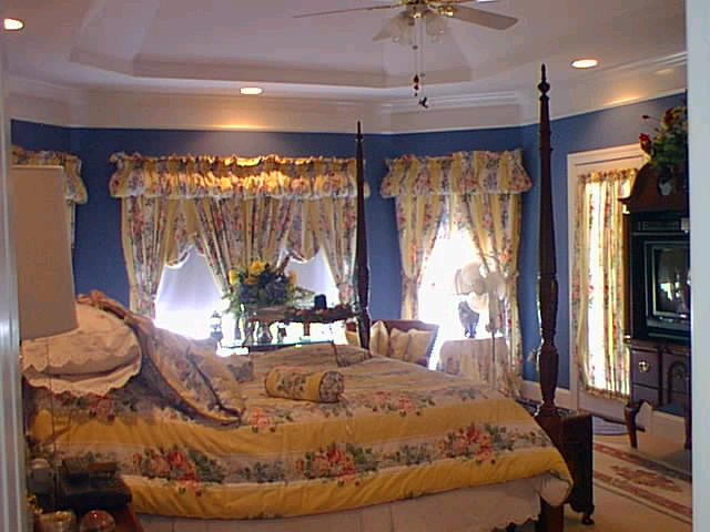 The top picture is her kitchen showing the bay window and bar. The bottom picture is her masterbedroom.