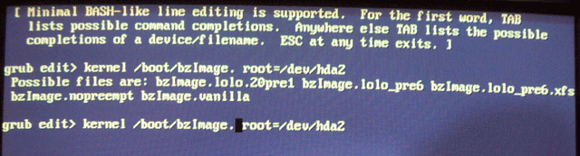 the TAB completion was done on "bzImage" grub automatically added the "." and then listed available kernels.
