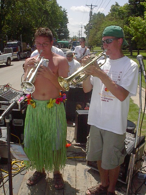 Front left to right: Andy w/ skirt, Joe is hidden behind Andy, Brad, Garrett, Jake is behind Jeff, and Jeff