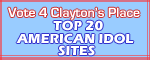 Hi, guys! I'm going to be doing some updates today, but if you guys have a minute, please take the time to vote for Clayton's Place on the Top 20 American Idol Sites over there on the left. This is embarassing--I'm losing to sites about Julia DeMato and Hadas Shaley. Clayton's Place is currently #50. Since this site isn't listed on Yahoo yet, this is the only way I can get traffic.