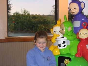On Tuesday Hannah and I went to Chuckie Cheese for lunch. Oh ya we also played a few games too. Hannah also meet her new friends Karl and Jennie.