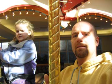 The carousel again. Yep we went again this Saturday to the carousel. Today Hannah rode the big horse and Daddy rode the little bear.