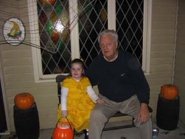 Halloween was a very busy day for Hannnah. In the morning she had her class party. From there she played with Riley for a while and then finally on to trick or treating. Our first stop was Grammy and Grampys. We went to a few houses in there neighborhood inclining Gail and Al's. We the trekked out to Mama and Papas to trick or treat with Megan and Andrew.