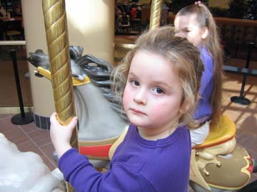 Thanksgiving Day! okay so I'm a bit late. It takes me awhile to download my pics from my digital camera. Anyway There is one picture from Thanksgiving Day at Mama and Papa's house and the other one is the day after Thanksgiving at the mall. Of course Hannah is ridding the carousel.