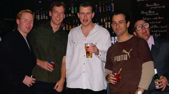![]() L-R: Benny Smith, DJ Balls and the arm of little Menyowi nursing one and a half pints. Pretty fucking slow! |