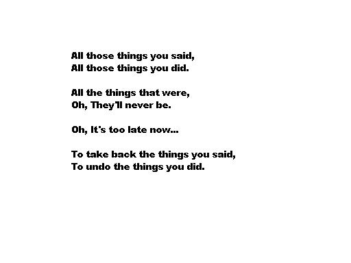 This was a look back through what happened with my ex-girlfriend. I don't exactly what i mean in this, but i think it speaks for it's self in a way. This showed that it was the end.